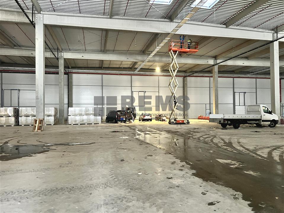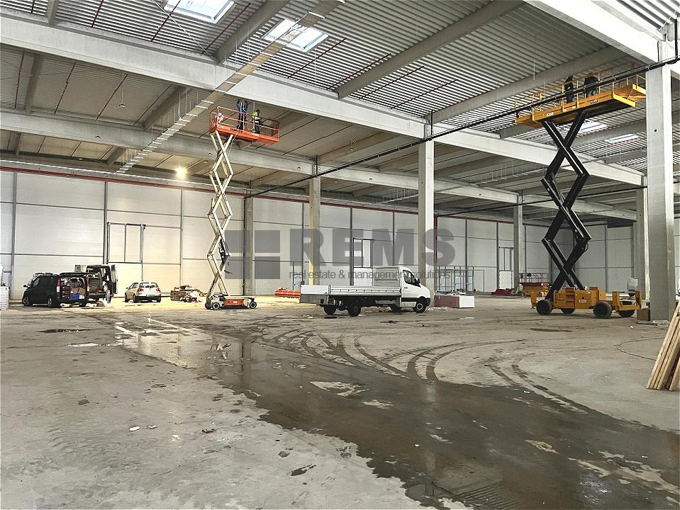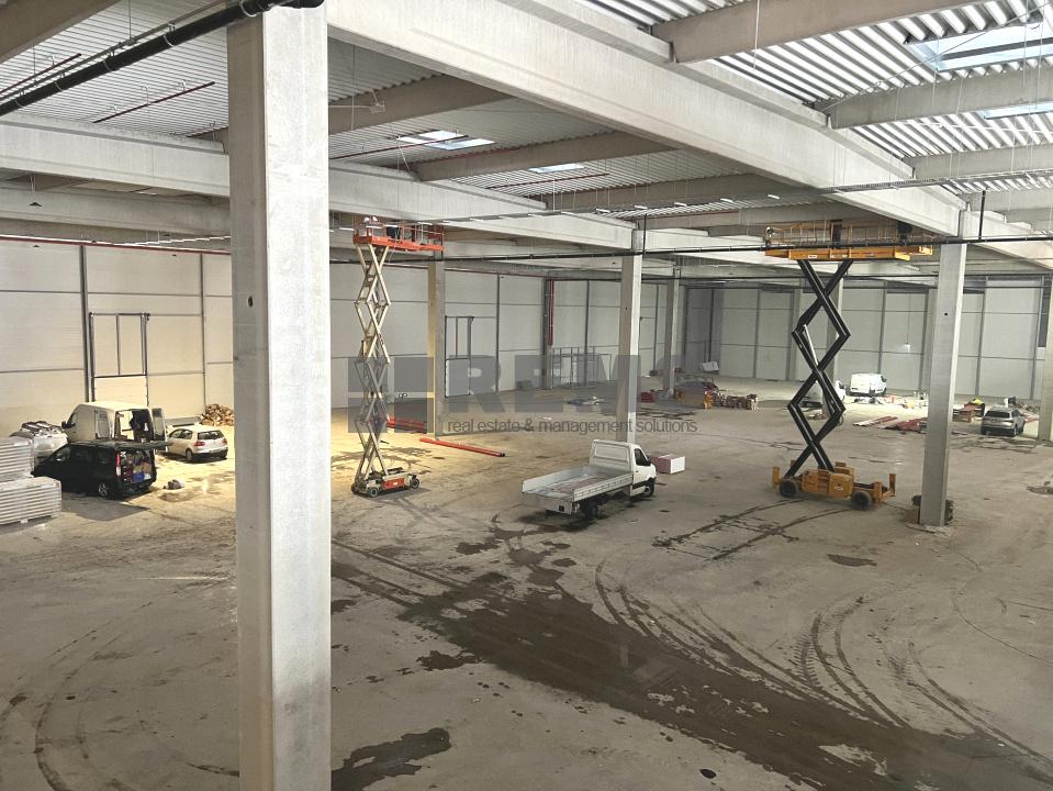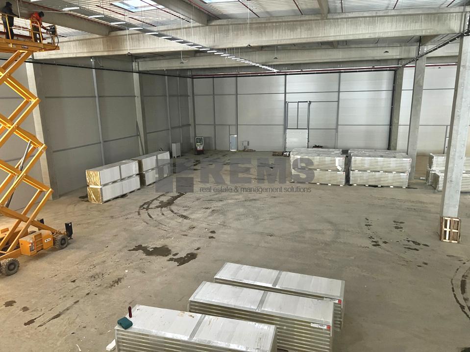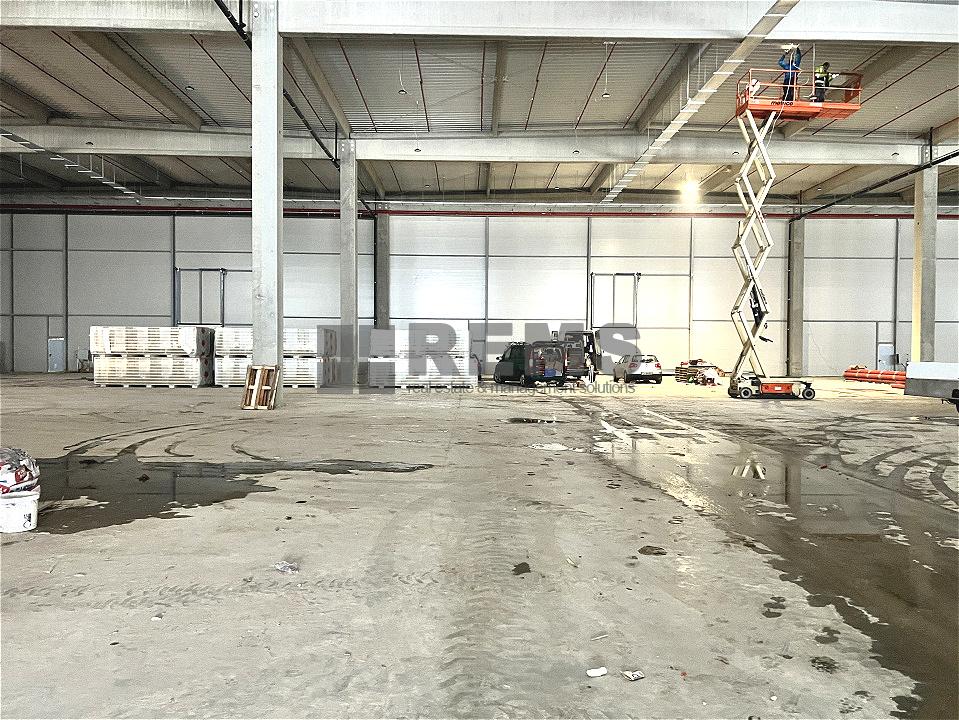 Disponibil pentru inchiriat hala noua clasa A cu Autorizatie de Securitate la Incendiu. Depozitul in suprafata totala de 6000 mp este disponibil si in module de 1350mp. Fiecare partitie este dotata cu 2 rampe si o poarta de acces de tip drive-in, inaltime utila de 10,5 m, instalatie de sprinklere si aviz ISU, sistem de incalzire cu aeroterme, pardoseli industriale. Birourile sunt la mezanin si sunt in suprafata de 150 mp pentru fiecare modul in parte. Se predau ultrafinisate cu sistem de climatizare, infrastructura electrica si IT, iluminat LED. Exista spatii construite pentru vestiare, chicineta precum si birouri generoase open space.