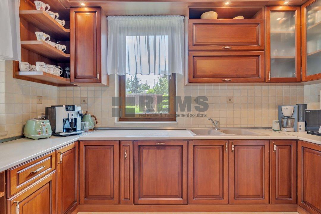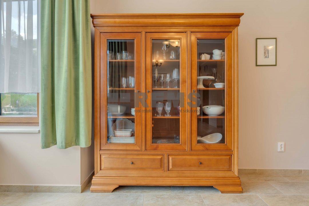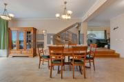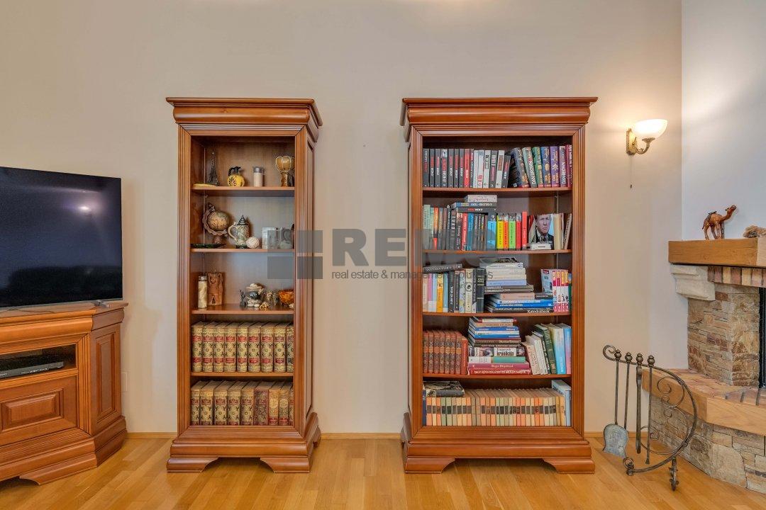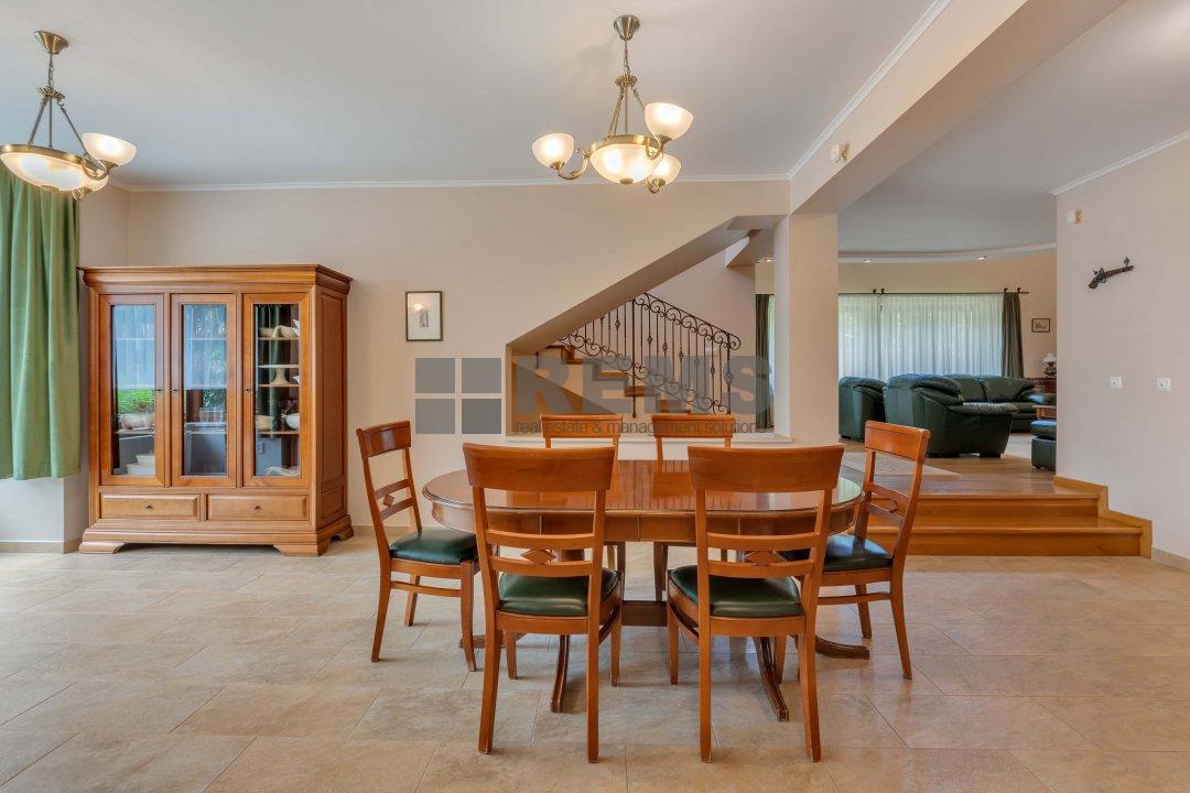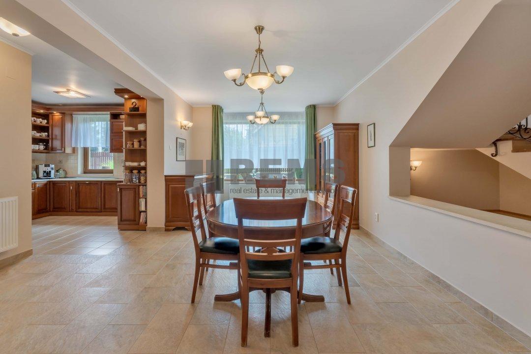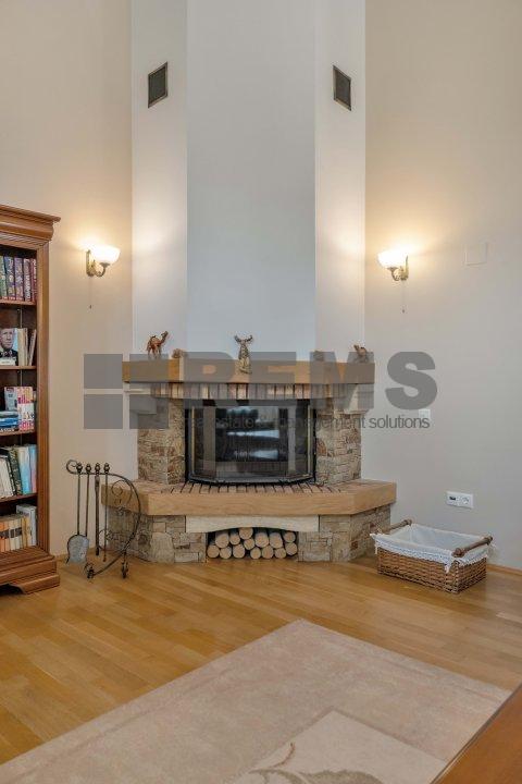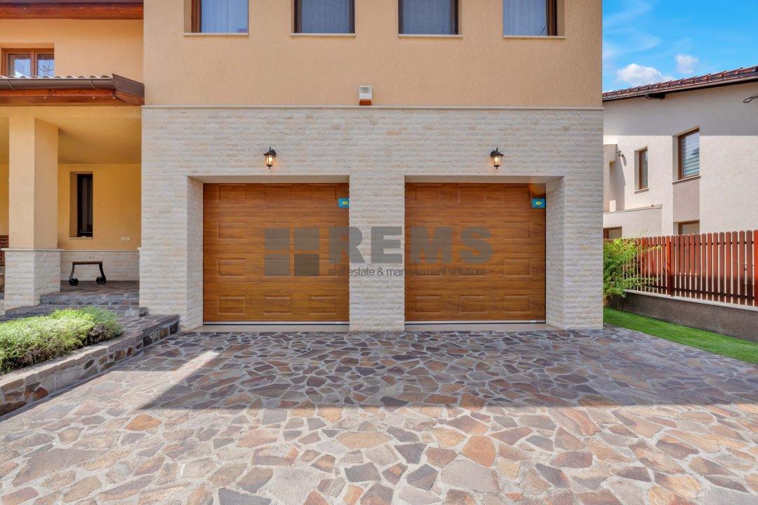 Proprietatea se lauda cu un spatiu de locuit generos de 320 mp, amenajat meticulos cu o atentie exceptionala la detalii. Pe masura ce pasiti in interior, veti fi intampinat de un spatiu aerisit si deschis, cu o camera de zi calda si primitoare, cu tavane inalte, podea eleganta din parchet stratificat bine intretinut si ferestre mari ce ofera multa lumina naturala. Bucataria aerisita, alaturata cu zona de servit masa este perfecta pentru a gazdui oaspetii si a savura mesele cu familia si prietenii. Tot la parter regasim garajul disponibil pentru 2 masini cu zone de depozitare precum si o baie complet echipata.