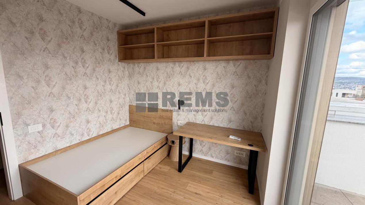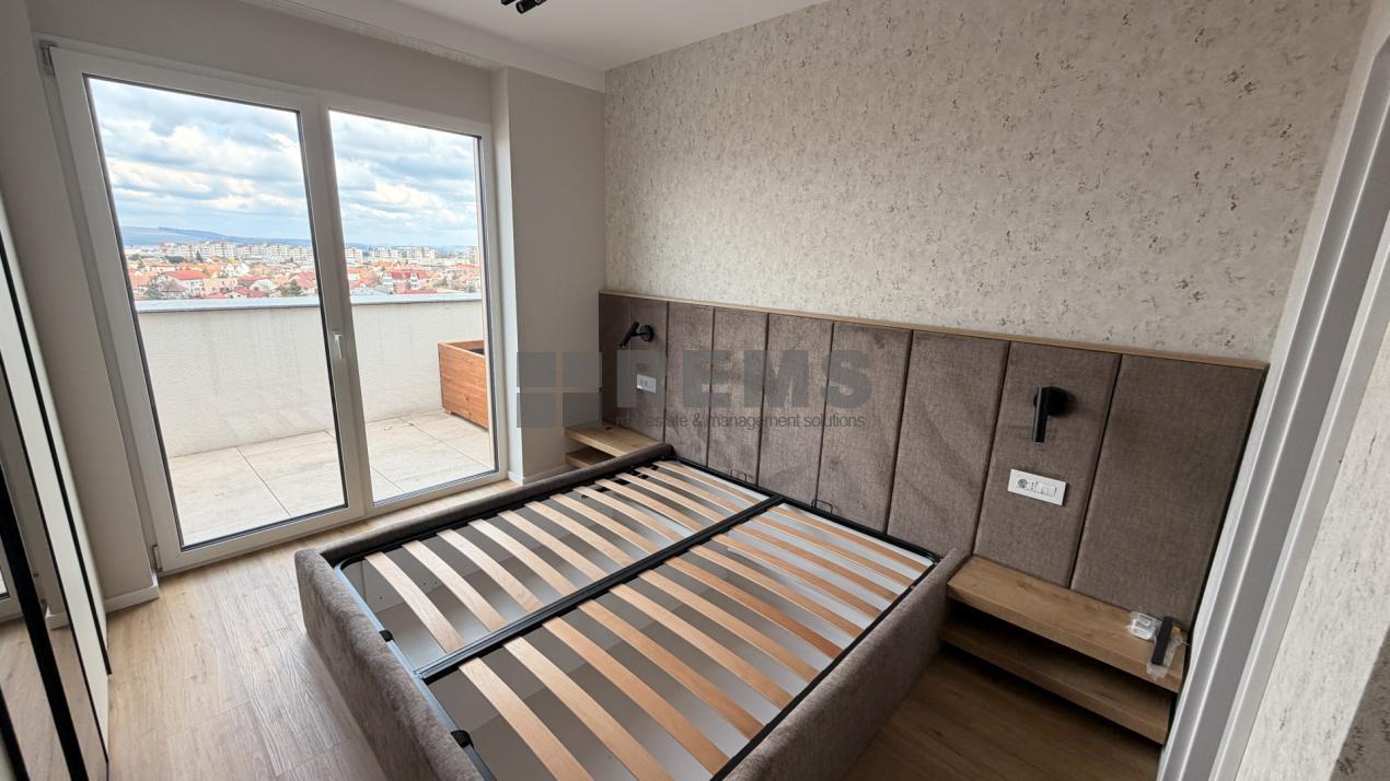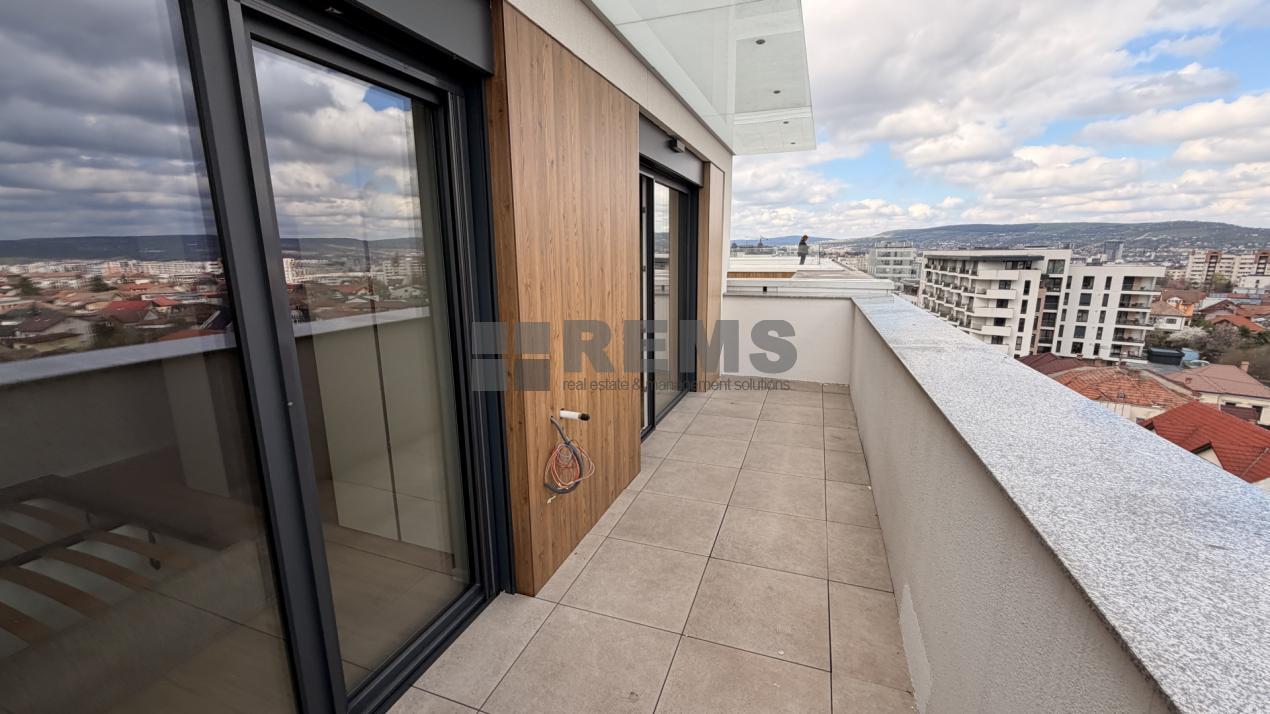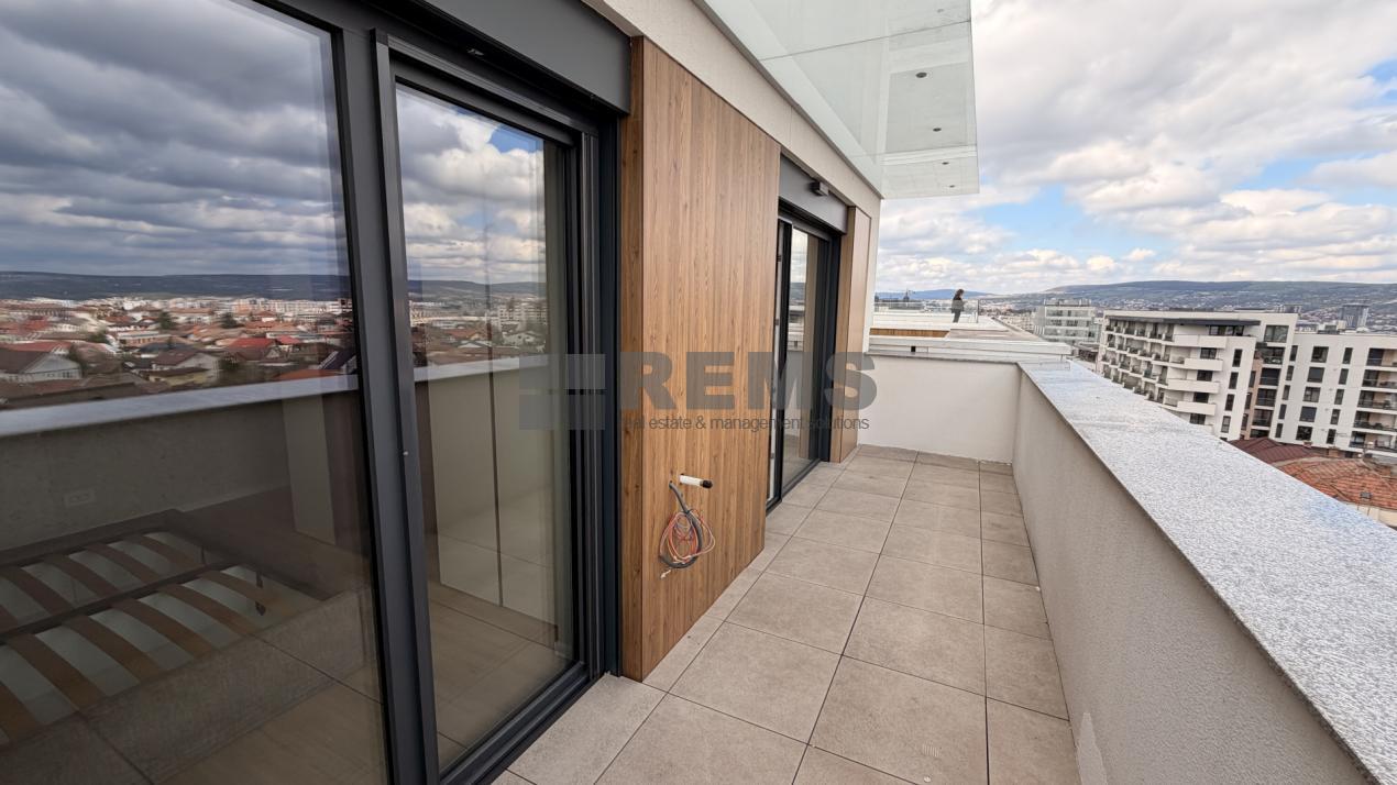 Proprietatea este situata la ultimele doua niveluri ale unui imobil nou, finalizat in 2026, si dispune de o suprafata utila de 91 mp. In plus, beneficiaza de un balcon si o terasa panoramica de aproximativ 20 mp, ambele oferind o priveliste deschisa asupra orasului.