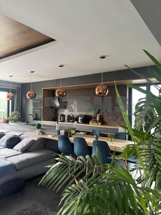 Se inchiriarza mobilat si utilat cu plita electrica, hota, cuptor, masina spalat vase, cuptor cu microunde incorporabil, masina spalat rufe, masina uscat rufe, aer conditioant cu functie de racire / incalzire, frigider, incalzire in pardoseala cu centrala proprie, TV. Atat centrala cat si AC se pot controla de pe telefon.